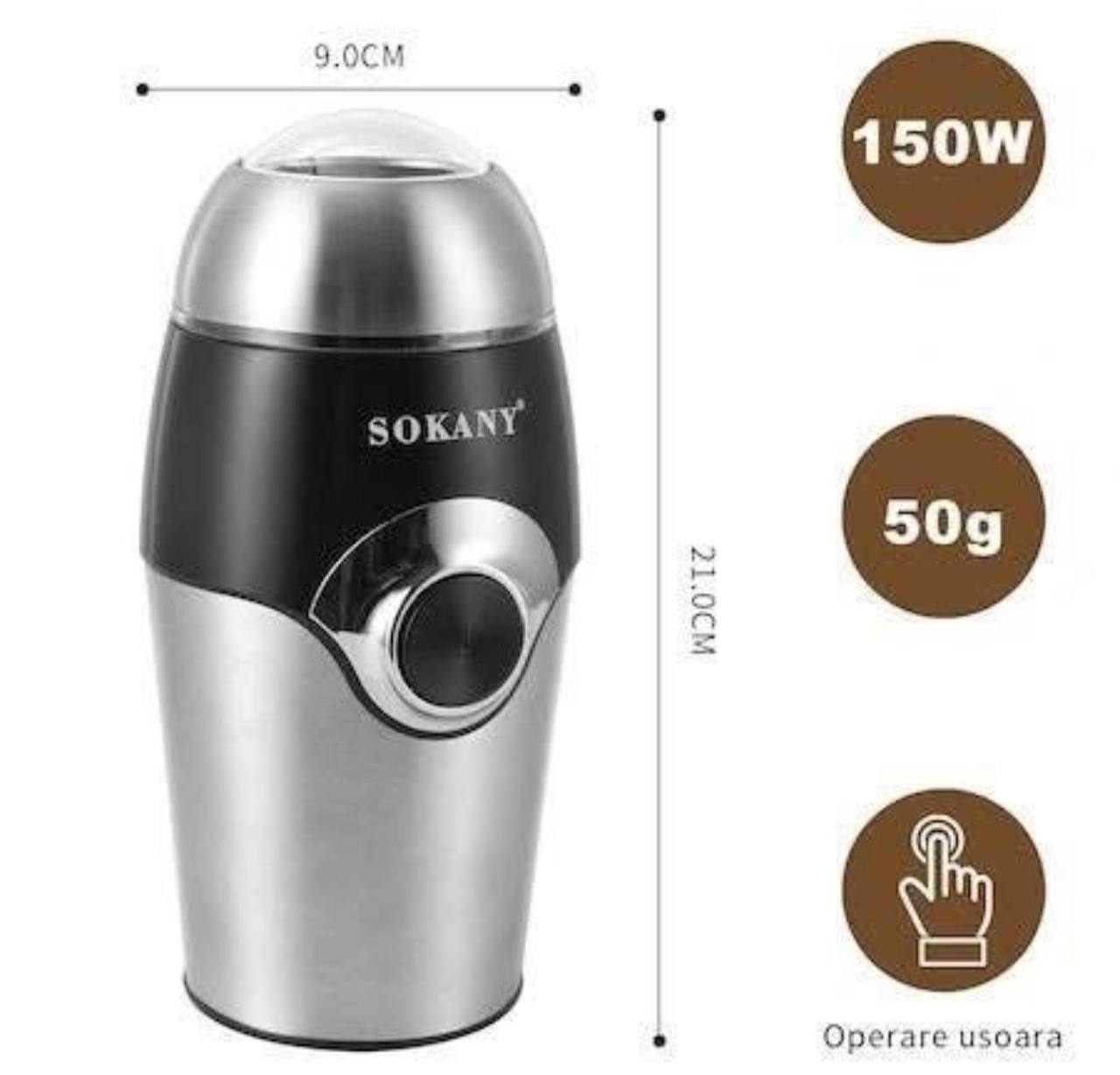 Descubre el sabor fresco y auténtico con este molinillo eléctrico de 150W de potencia, diseñado para moler café, especias, semillas y más con resultados profesionales.