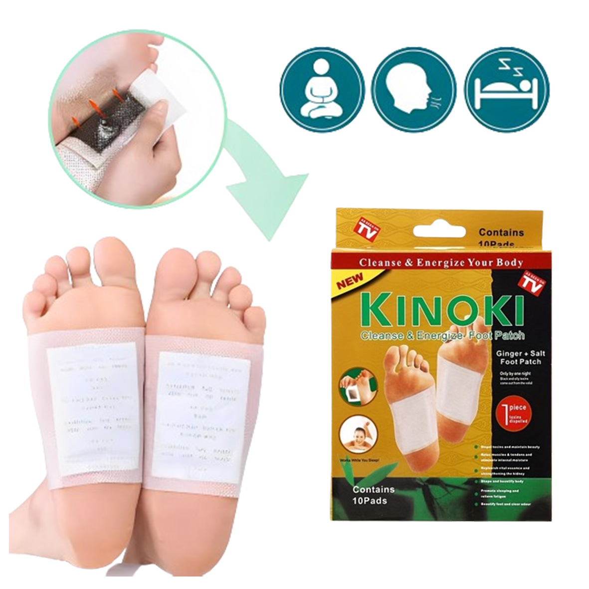 -Los parches KINOKI para pies son un tipo de producto que se promociona para ayudar a eliminar toxinas del cuerpo a través de los pies mientras duermes, se afirma que estos parches tienen la capacidad de absorber toxinas del cuerpo a través de los poros de la piel de los pies.