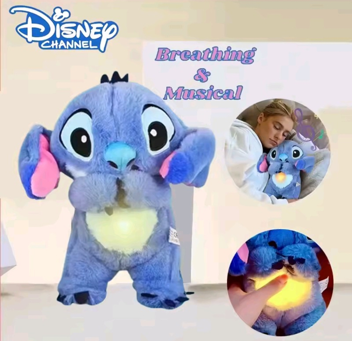Nuevo muñeco de peluche de Disney Lilo & Stitch, juguete calmante de punto rosa con música, luz, respiración, juguete suave para dormir de Anime para bebés y niños.